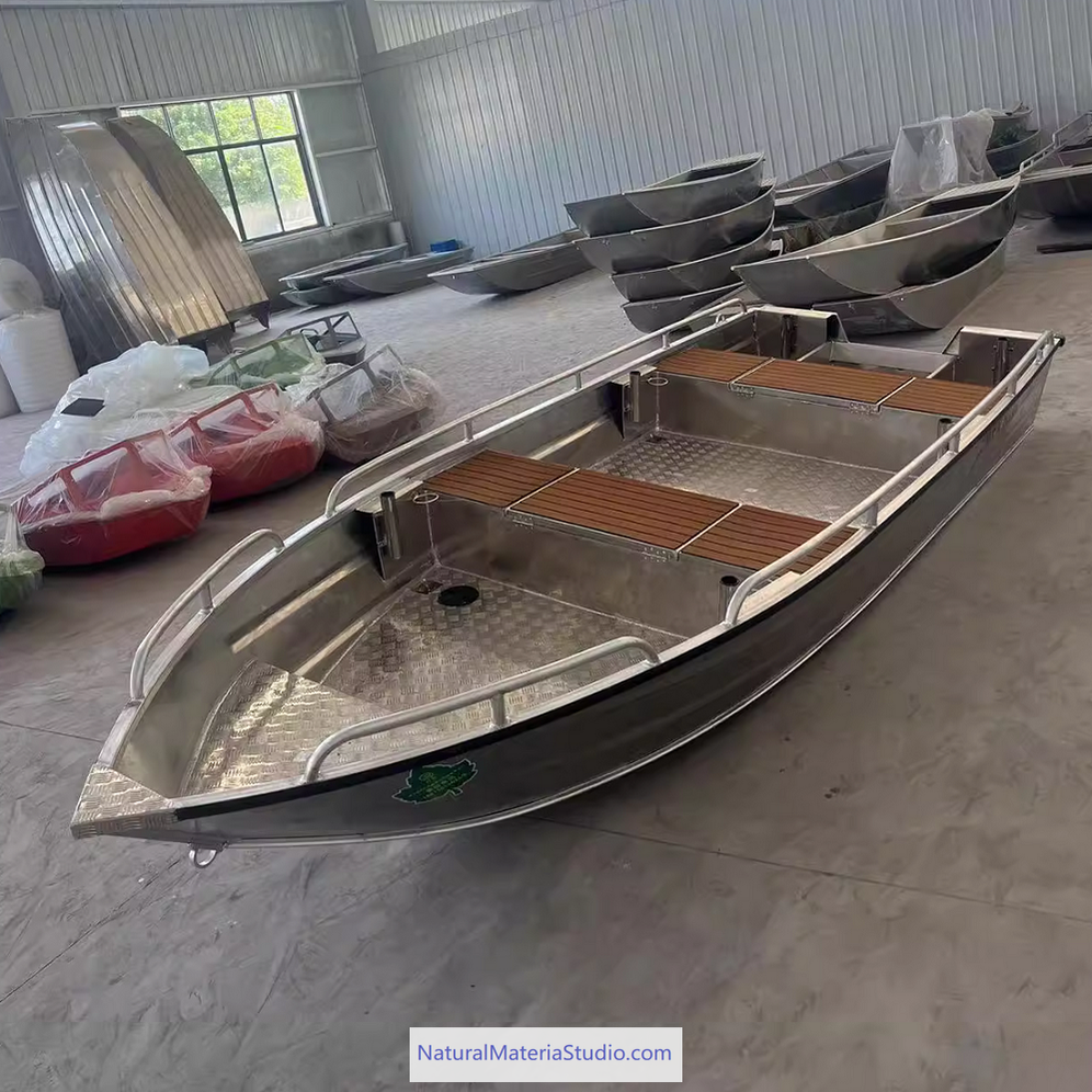 نحن مصنعون بخبرة تزيد عن 30 عامًا في إنتاج قوارب سبائك الألومنيوم، ندمج التصميم، القطع، اللحام، الطلاء، والتفتيش. مجهزون بعدة آلات قطع ليزر كبيرة الحجم وخط إنتاج آلي، نضمن أن كل قارب يفي بالمعايير الدولية. جميع القوارب مزودة بتقنية اللحام الروبوتي، مما يوفر جودة حرفية ولحام من الدرجة الأولى. يمكن تخصيص لون القارب، الملصقات، الرسومات، والشعار. الألوان القياسية المتوفرة في المخزون تشمل البرتقالي، الأزرق، الأبيض، الرمادي، الأسود، والأخضر. السعر يعتمد على حجم القارب ويتراوح بين 250–350 دولار أمريكي للقارب.