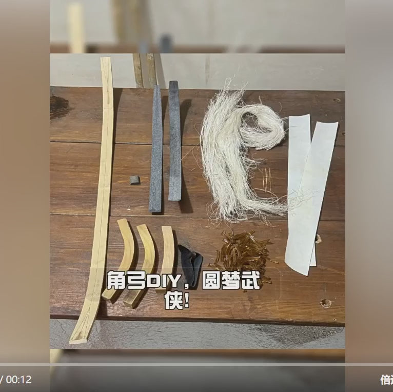 Each kit includes right size waterbufallo horn strips, bamboo or wood(Mulberry) core, siyahs, handle, sinew, fish glue, and animal skin — all the essential materials required to make one bow. All parts are semi-finished and crafted using traditional insert-joint methods, faithfully restoring the ancient horn bow structure. We provide sufficient material sizes and accessories, while the drawing weight and distance need to be adjusted by yourself.