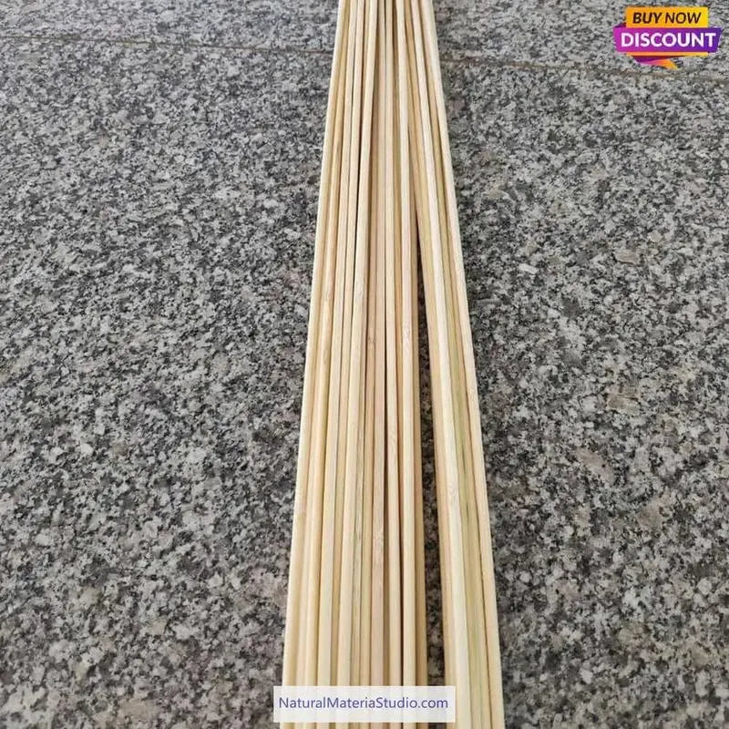 Unsere Bambusstäbe eignen sich perfekt für alle Arten von Heimwerkerprojekten. Ob Laternen, Drachen, Requisiten, selbstgemachte Möbel, Dekorationen, Kunsthandwerk, Tür- und Fensterreparaturen oder sogar Tierkäfige – sie eignen sich perfekt für Heimwerkerprojekte. Jeder Stab ist 195 cm lang und wir haben sie nach Durchmesser sortiert, um Ihnen die Arbeit zu erleichtern. 2-3 Minuten in normalwarmem Wasser einweichen – das erleichtert die Handhabung und verringert die Bruchgefahr.