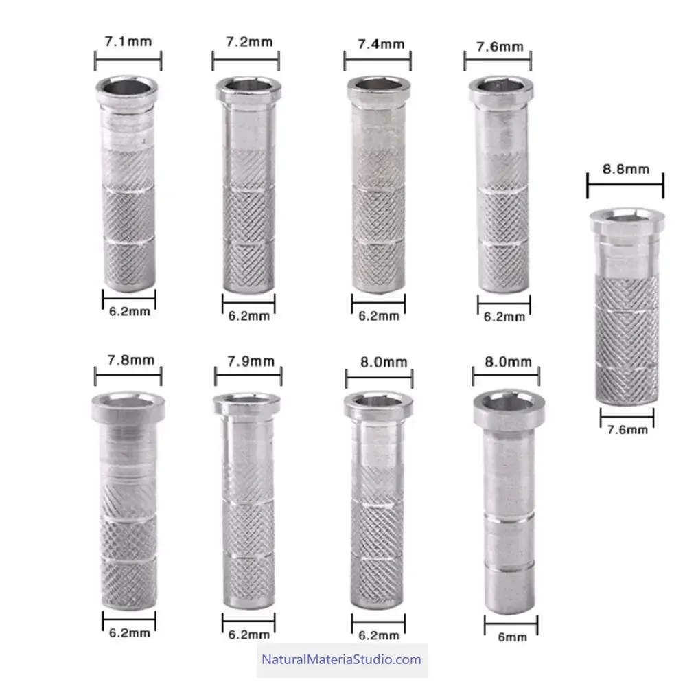 Dieser Aluminium-Einsteckadapter ist für Fiberglas- und Carbonpfeilschäfte konzipiert und bietet eine sichere Verbindung für austauschbare Pfeilspitzen. Er besteht aus langlebigem Aluminium, verfügt über ein kleinstes Loch mit einem Innendurchmesser von 4,2 mm und ist mit international standardisierten Schraubendurchmessern kompatibel. Abmessungen und Gewicht wie in den Produktbildern gezeigt: 1 Zoll = 25,4 mm, 1 Grain (gn) ≈ 0,0648 Gramm (g).