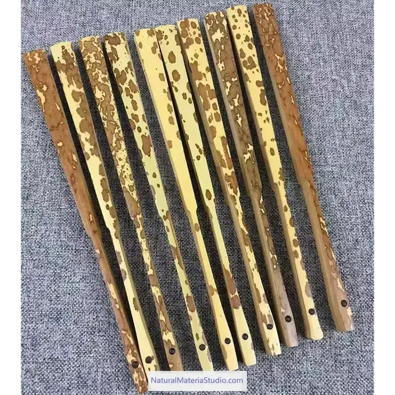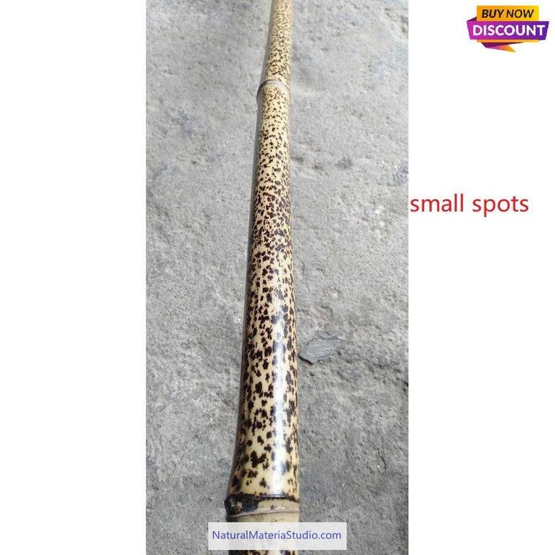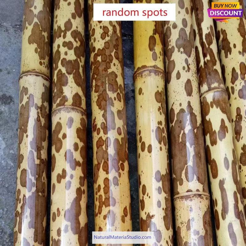 Estas cañas fueron cuidadosamente seleccionadas y tienen un diámetro exterior de 4-5 cm y una longitud de 35-40 cm, sin nudos. El bambú presenta manchas pequeñas, medianas o irregulares, lo que resalta su rareza y singularidad, ideal para artesanos de bambú de alta gama. Además, estas cañas de bambú manchadas son aptas para otros usos, como pendientes, pulseras, anillos, etc., lo que demuestra su versatilidad.