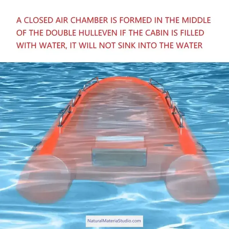 Las embarcaciones están fabricadas con materias primas importadas de LLDPE de alta calidad. Cuentan con un casco aerodinámico de doble capa reforzada para mayor durabilidad y resistencia. Son aptas para diversas actividades como el ocio, el cruce de ríos, el patrullaje, la pesca y la cría de peces.