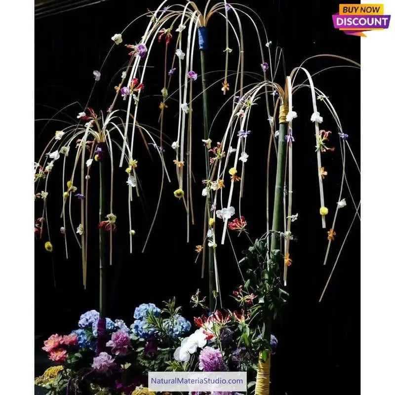 Flexibilidad: Estas tiras verdes, que gradualmente se tornan amarillas, conservan la resistencia, la flexibilidad y la capacidad de estiramiento naturales del bambú. Se pueden doblar en diversas formas, especialmente después de remojarlas en agua tibia durante 2-3 minutos.