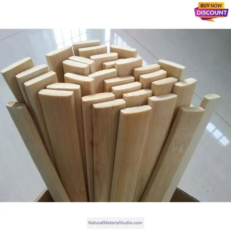 Calidad del material: Seleccionadas de las partes más gruesas de la pared de bambú, estas tiras conservan las fibras más útiles. Un lado es prácticamente plano, mientras que el otro presenta una ligera curvatura.
