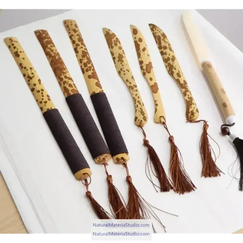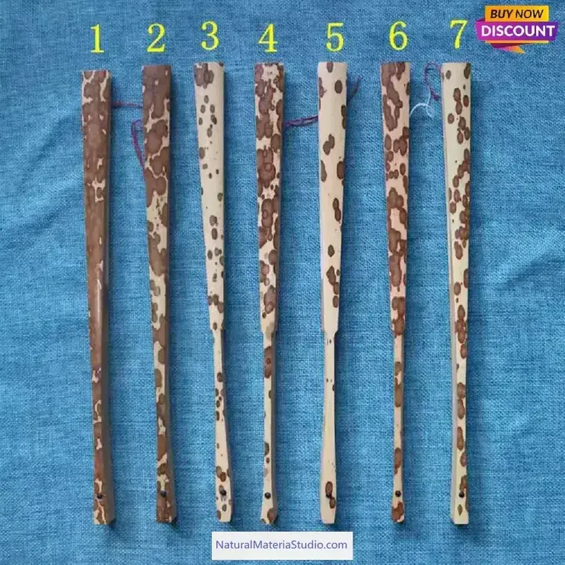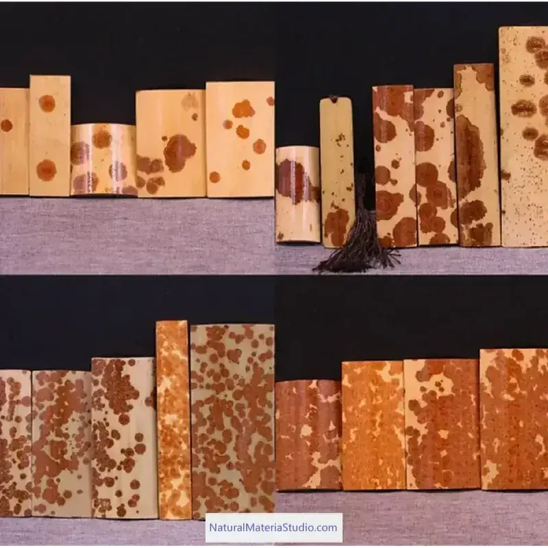 Estas cañas fueron cuidadosamente seleccionadas y tienen un diámetro exterior de 4-5 cm y una longitud de 35-40 cm, sin nudos. El bambú presenta manchas pequeñas, medianas o irregulares, lo que resalta su rareza y singularidad, ideal para artesanos de bambú de alta gama. Además, estas cañas de bambú manchadas son aptas para otros usos, como pendientes, pulseras, anillos, etc., lo que demuestra su versatilidad.