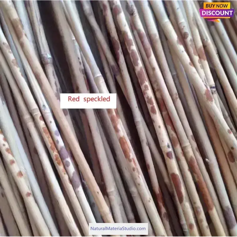 Variedades de color: Disponible en dos colores distintos: rojo y negro moteado, como se muestra en las fotos. El moteado es natural y se distribuye aleatoriamente. El precio depende de las especificaciones de longitud y diámetro (extremo más ancho) en cm (1 pulgada = 2,54 cm), que es superior a 25 cm de largo con uniones de bambú.