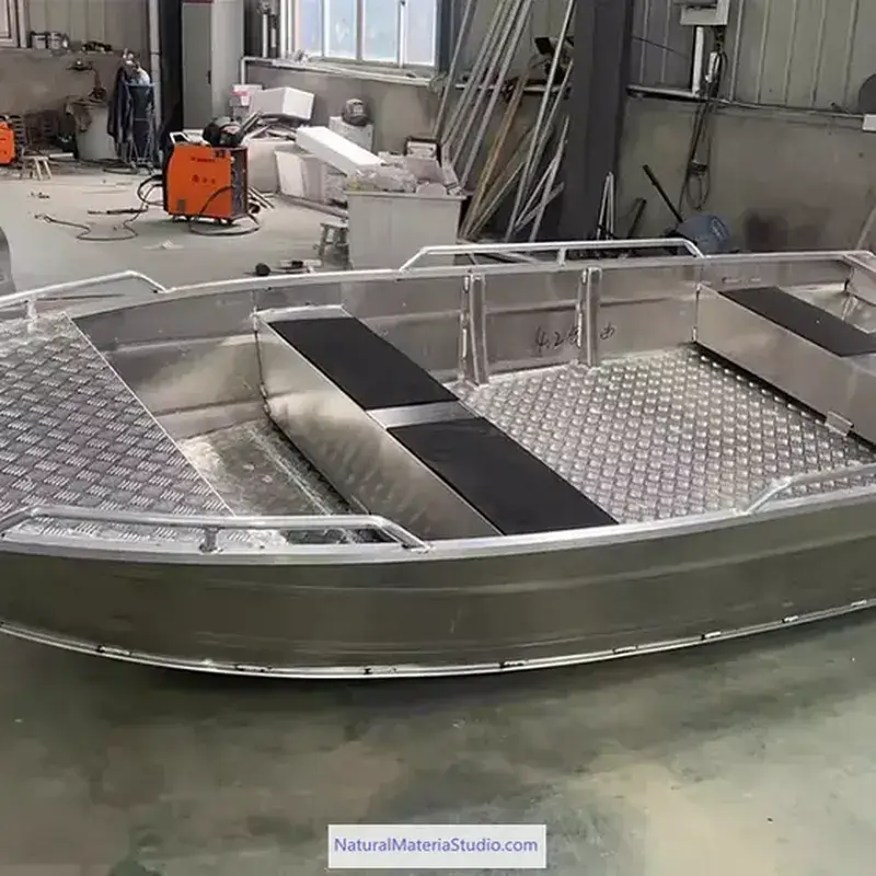 Fabricado con placas de aluminio de grado marino de 2,5 mm / 3,0 mm / 4,0 mm / 6,0 mm de espesor (5083-H116 / 5083-H321), resistentes y a prueba de impactos. Diseño de cabina de espuma totalmente sellada, insumergible incluso en caso de inundación. Fondo antideslizante con almohadillas de fricción para mayor estabilidad. Todos los modelos incluyen pasamanos; las embarcaciones de más de 3,8 m incorporan barandillas laterales completas. Estructura reforzada del travesaño de popa para soportar fuertes impactos. Perfil lateral ajustable de 4 × 2,5 cm. Barandilla y estructura de doble fondo opcionales. Apto para agua salada y dulce, con un diseño sencillo y elegante.