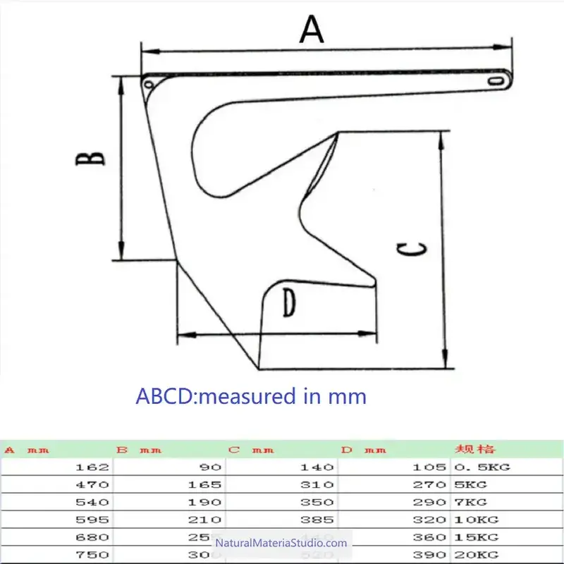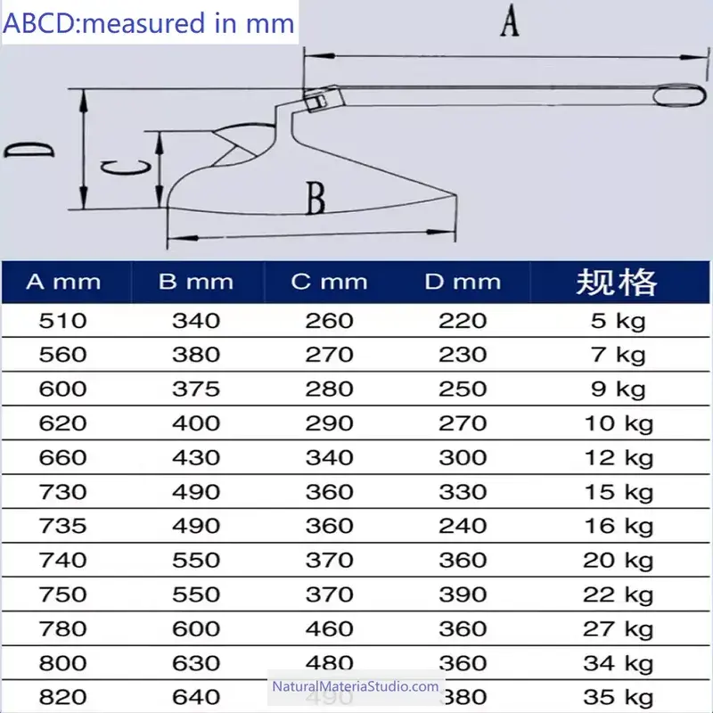 B: Ancla Bruce (Ancla de garra) – Para yates y barcos pequeños, medianos y grandes (1-40 kg, personalizable)