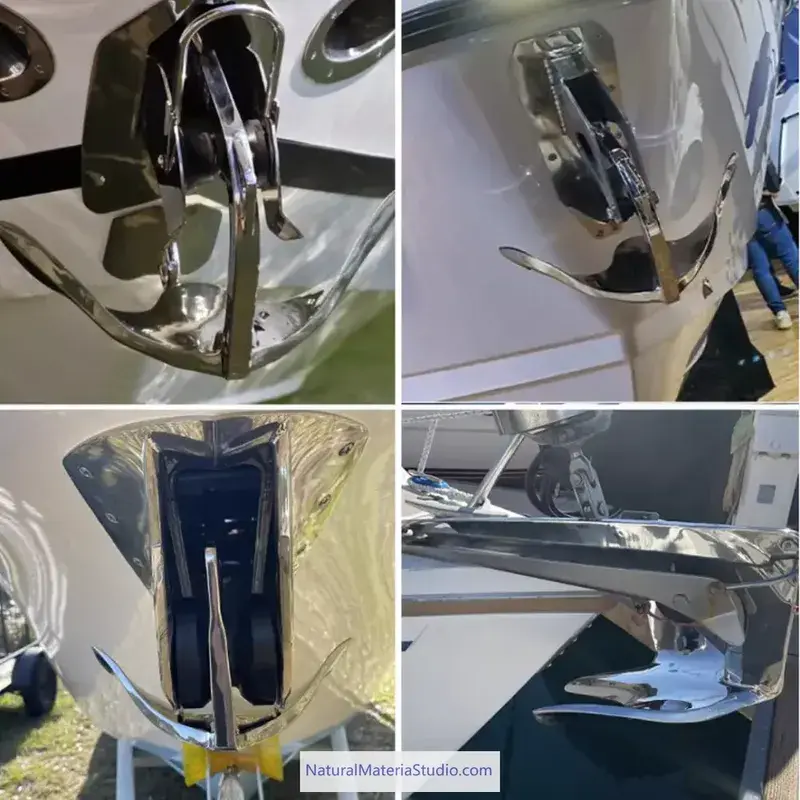 Todas las anclas están fabricadas en acero inoxidable 316 de grado marino, lo que les confiere resistencia a la corrosión, durabilidad y una gran capacidad de sujeción en diversos fondos marinos. Estas anclas presentan diseños elegantes y prácticos, están elaboradas con esmero y poseen un gran valor como piezas de colección.