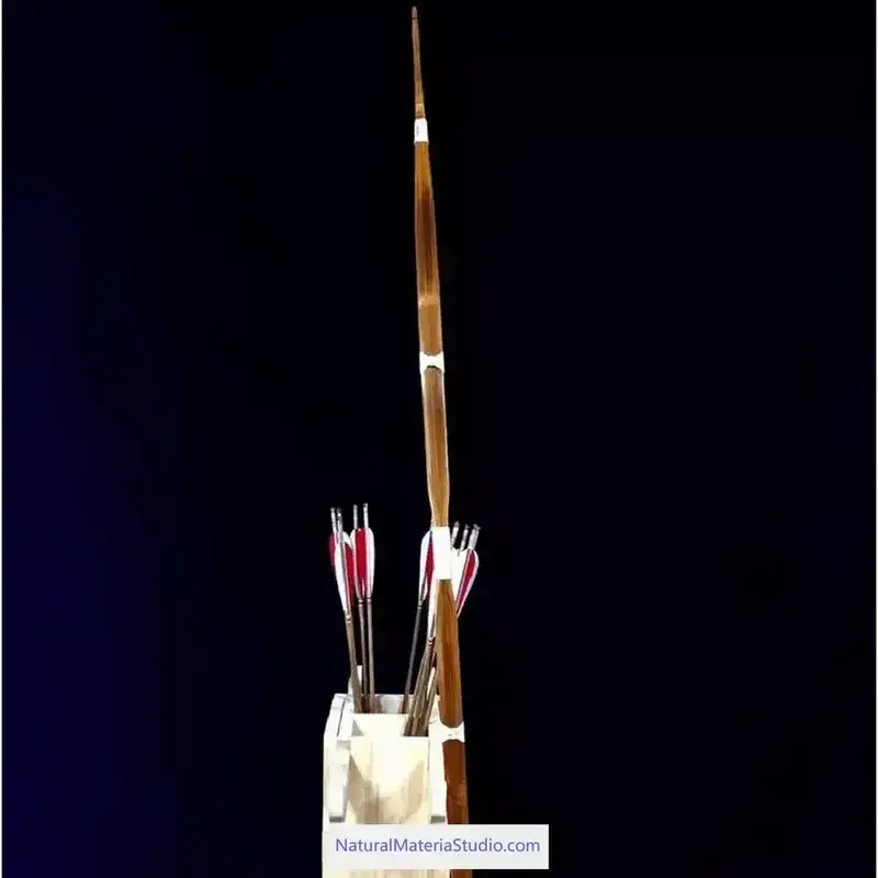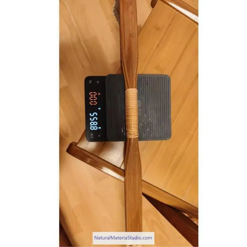 Sezioni lunghe accuratamente selezionate (i nodi del bambù sono più di 30 cm) di bambù moso denso e spesso, specificamente lavorato per la fabbricazione di archi di alta qualità. Le strisce di bambù vengono sottoposte a processi di vapore, sgrassatura e asciugatura per migliorare durata e stabilità. Realizzato con bambù di almeno quattro anni, garantendo forza e flessibilità ottimali.