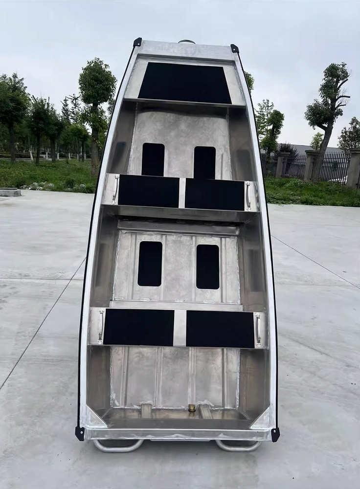 Made by thickness: 2.5mm / 3.0mm / 4.0mm /6.0mm marine-grade aluminum plates(5083-H116 / 5083-H321), durable and impact-resistant. Fully sealed foam cabin design, unsinkable even when flooded. Anti-slip bottom with friction pads for better stability. All models are equipped with handrails; boats over 3.8m include full side rails. Reinforced transom beam structure to withstand strong impact. Adjustable 4×2.5 cm side profile design. Optional railing and double-bottom structure. Suitable for both saltwater and freshwater use, with a simple and elegant look.