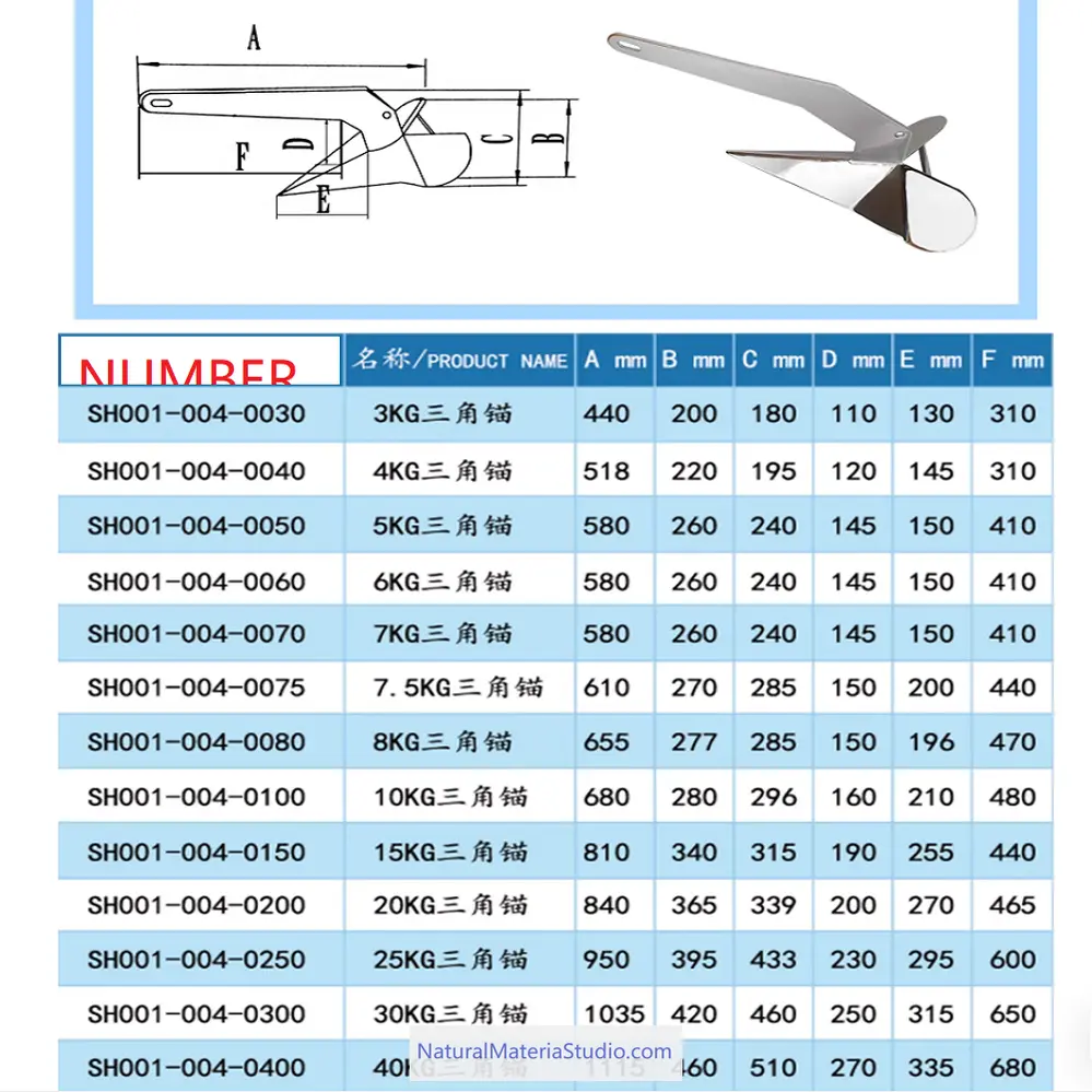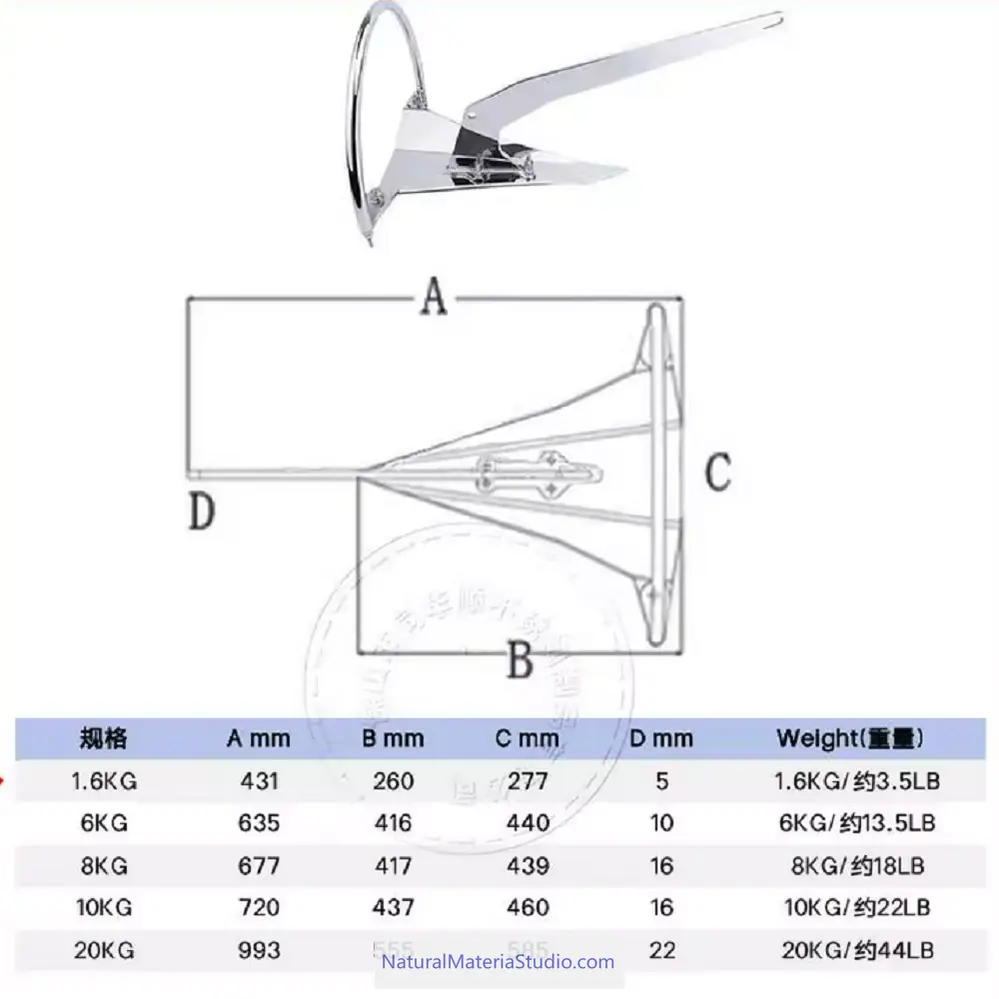 Tutte le ancore sono realizzate in acciaio inossidabile marino 316, offrendo eccellente resistenza alla corrosione, durata e tenuta affidabile su una vasta gamma di fondali. Con design elegante e pratico e finitura raffinata, offrono sia prestazioni che valore da collezione.