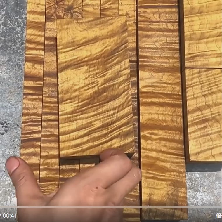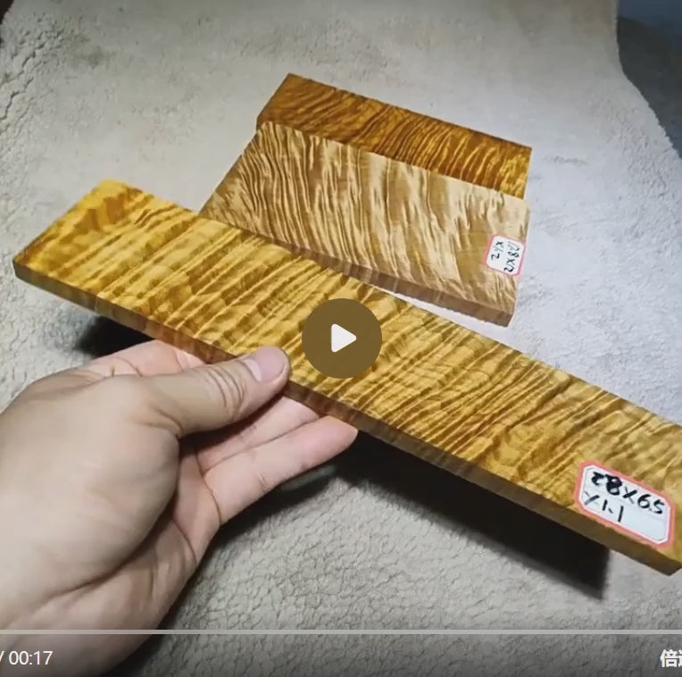 中国南部原産の成長の遅い樹木から慎重に選ばれたこれらの希少な硬材ブランクは、完全なゴールデンシルク繊維構造と顕著な波紋模様を特徴としています。お客様の正確な仕様に合わせたカスタム木材サイズもご利用いただけます。お客様は好みの木目パターンの参考写真を提供することもでき、同様の水の波紋の方向性と視覚的特徴を持つピースの選定や調達をお手伝いいたします。自然木での完全な複製は不可能ですが、自然が許す限りお客様のデザインビジョンにできるだけ近づけるよう努めます。