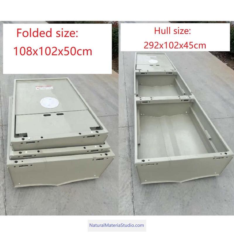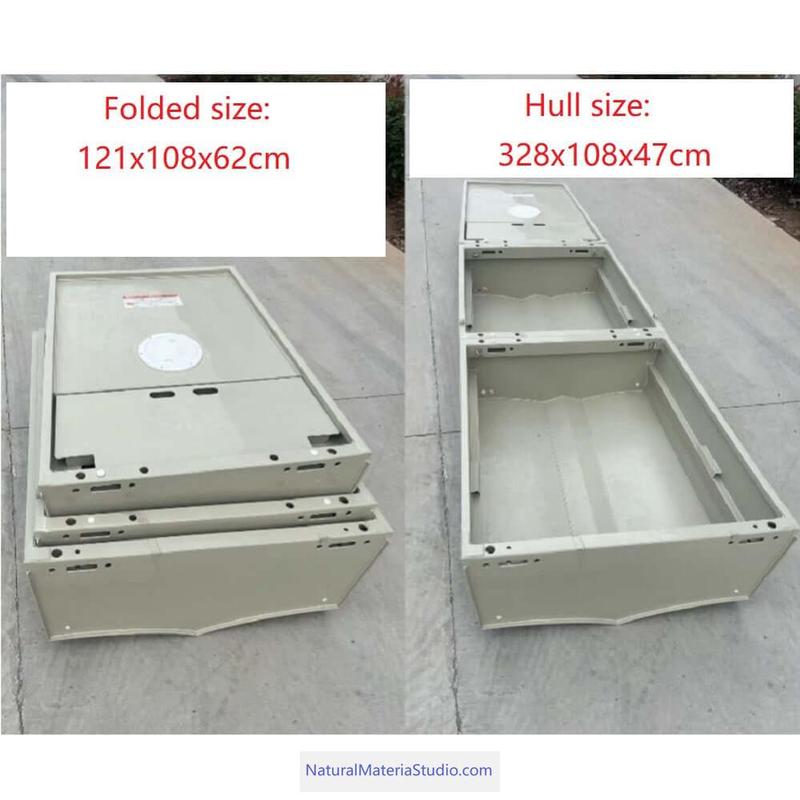 보트 뒤쪽 폰툰 (x2) – 꼬리 부력을 증가시키기 위해 – 크기: 47x30x30 cm (각각)