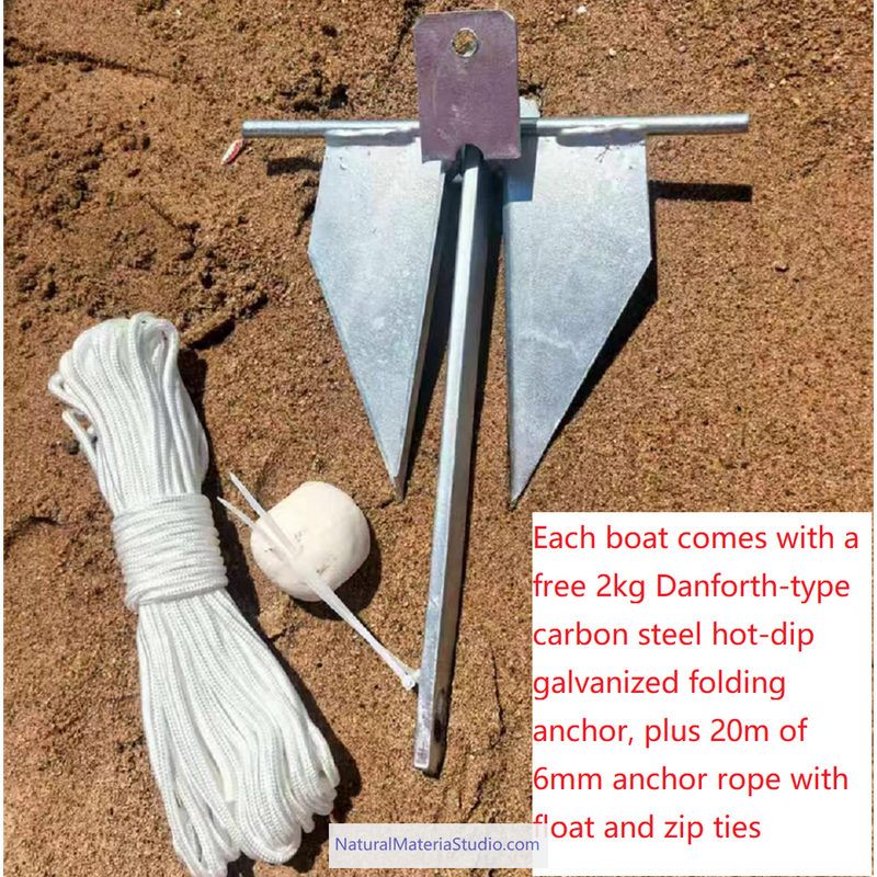 3) 다용도 앵커 키트: 240g 스테인리스 스틸로 제작되어 모래, 해초, 가지 또는 바위에 단단히 고정됩니다. 접이식으로 보관이 용이하며 100m 로프가 포함되어 있습니다. 또한 해안에 던져 나무에 걸어 보트를 안정시키거나 비상시 도움을 줄 수 있습니다.