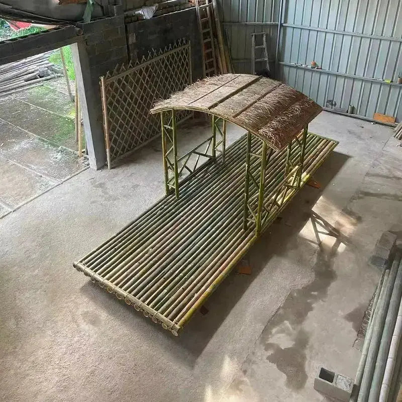Resimler yapabileceğimiz bambu saları göstermektedir, yüzdürme için ek köpük ve koruma için ince metal plakalarla tasarlanmış iki uçlu düz stil bambu saları sunuyoruz. İsteğe bağlı bambu pavyonlar gölge sağlar ve estetiği artırır. Her sal seti 3 ücretsiz kit ile gelir: